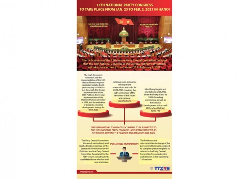 The 13th National Congress of the Communist Party of Vietnam will take place in Hanoi from January 25 to February 2, 2021.