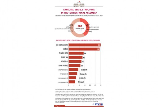 There will be a total of 500 seats in the 15th National Assembly at both central and local levels, according to a new resolution adopted by the National Assembly Standing Committee.