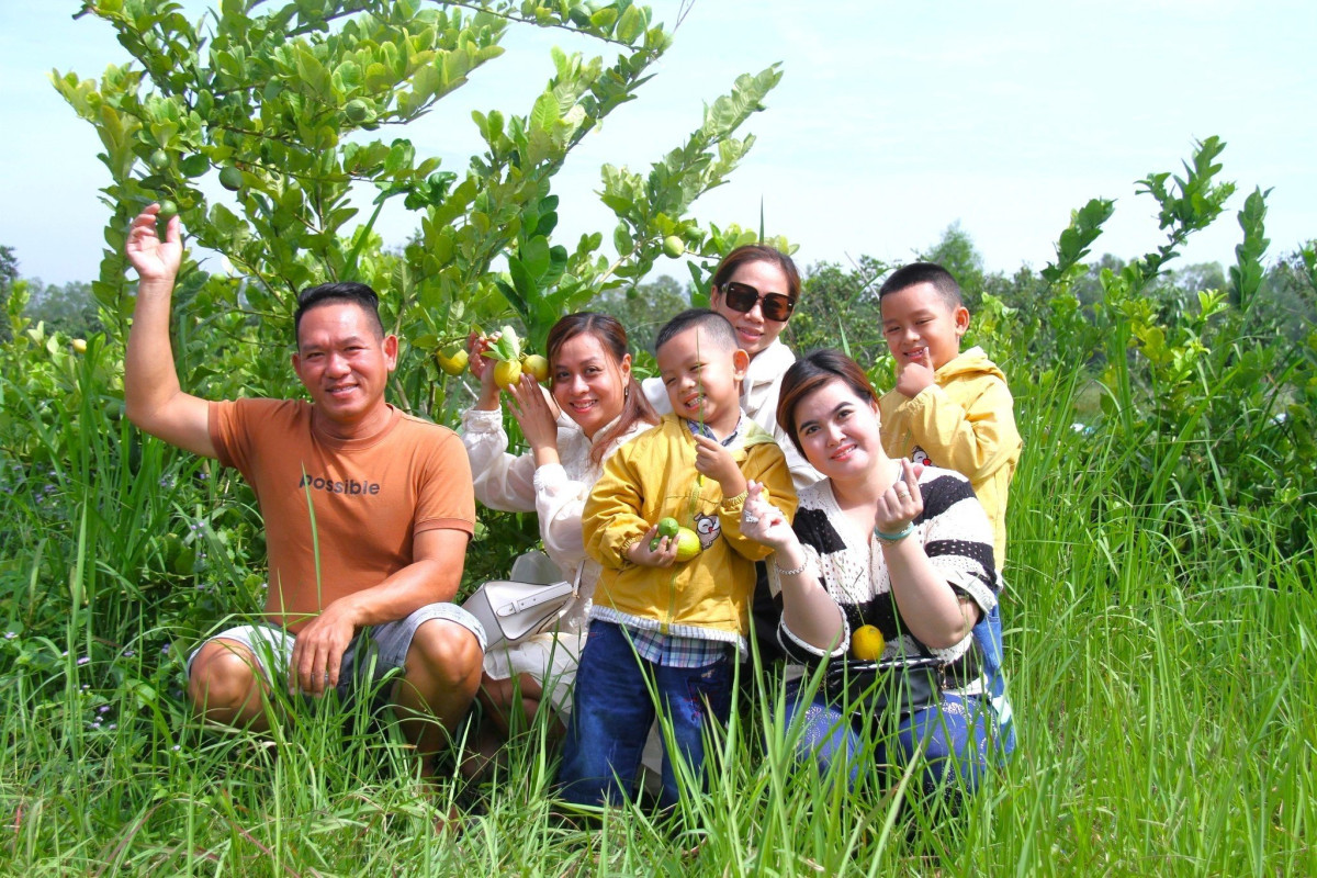 Tourists take souvenir photos at the lemon garden of Chavi Garden (Ben Luc district)