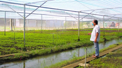 Mr. Tran Tiet Giao (Phuoc Hau commune, Can Giuoc district) has applied an automatic irrigation system to grow vegetables