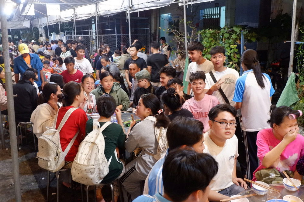 After the opening ceremony on the afternoon of January 15, visitors from all over the country began to flock to Tam Vu town to participate in the festival. On the night of 15 of the 1st lunar month, the streets were crowded, shops were bustling, and the Tan Xuan Communal House area was always packed with people coming and going to burn incense and worship the gods. All the streets in Tam Vu town were brightly lit; the offerings and altars in the communes and towns were also completed.