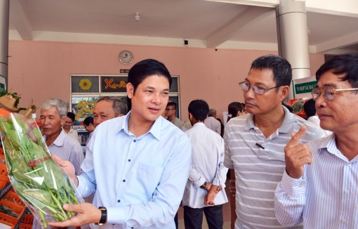 District leaders visit the booth to introduce vegetable products of cooperatives at the workshop