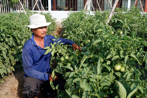 Depending on the season, weather and market demand, Mr. Chung will choose the appropriate vegetable to avoid the situation of "high harvest, low price". He often intercrops tomatoes, bitter melon, cucumbers, cabbage, etc. Currently, with 0.7 hectares of land, he divides it into planting tomatoes and cucumbers. After harvesting the crop, he will switch to growing other vegetables to avoid the decline in soil fertility and reduce the risk of harmful pests and diseases.