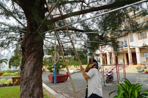 “Every year, I go to Tan An Parish to help with some tasks about a month before Christmas. This year, our group with more than 10 people helps the church decorate to make it more sparkling. Particularly, I was in charge of pruning pine trees, attaching LED lights, etc. Everything was carefully and meticulously prepared for Christmas and a happy new year, ”Mr. Duc said.