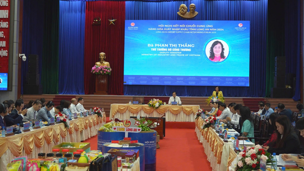 Deputy Minister of Industry and Trade - Phan Thi Thang assessed that in 2024, the world situation continues to face many complicated developments, with many potential risks threatening the stability and development of global trade. However, Long An is one of the provinces actively integrating, making efforts to adapt, and flexibly implementing strategies to stabilize production and business; promoting trade connection activities and expanding consumption markets.