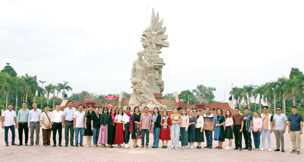 In 2024, the Tourism Promotion Information Center organized many activities to promote the development of rural tourism, river tourism, and tourism development associated with promoting the value of historical relics in the province (Photo: The famtrip delegation visits the Long An Monument Park "Bravery and resilience, all people fighting the enemy")