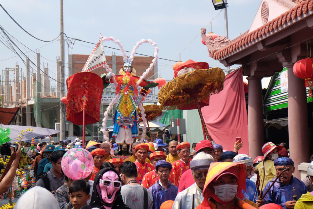 The festival space extends from Tan Xuan communal house to Linh Phuoc pagoda, Ong pagoda, Dien temple, Am Nhon temple, Phuong Que Ngoc Dai Holy See, Tam Vu river, etc. Thereby, the festival demonstrates the fusion of many religions and beliefs, notably Buddhism and Caodaism.