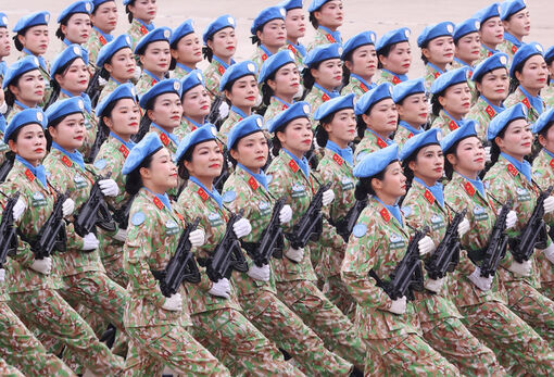 Female peacekeepers march at the ceremony marking the 80th National Day on September 2. (Photo: VNA)