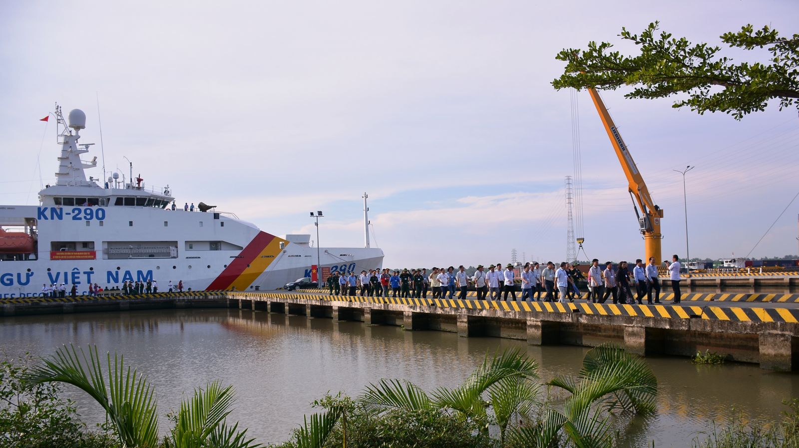 Together with the delegation of Ba Ria - Vung Tau and Kon Tum provinces as well as the Central, local and business delegations, the delegation of Long An province including 20 members led by the Standing Deputy Secretary of the Provincial Party Committee - Nguyen Van Duoc started on the fishing supervisory ship No.290 to visit soldiers and people in Truong Sa island district and DK1 marine defence platform.