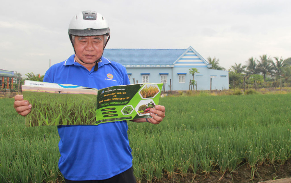 Mr. Vo Van Van (Phuoc Ke Hamlet, Phuoc Lam Commune, Can Giuoc District) often studies documents on organic production methods to apply to onion cultivation