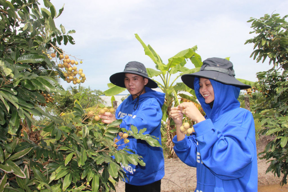After 2 years, the trees began to bear fruit. At this time, Mr. Binh encountered problems with output. He shared: “In times of difficulty, I decided to plant a few more fruit trees and open the garden for visitors to visit, both to earn ticket money and to sell fruit without depending on traders”. Currently, on an area of 1.5 hectares, Mr. Binh grows longan, apple, guava, plum, sapodilla, and Thai jackfruit. He cooperated with the Vam Co Farmstay Eco-tourism Area to open the fruit garden on the 3 weekends. Visitors from many places inside and outside the province love fresh, delicious, and safe fruit from the garden.