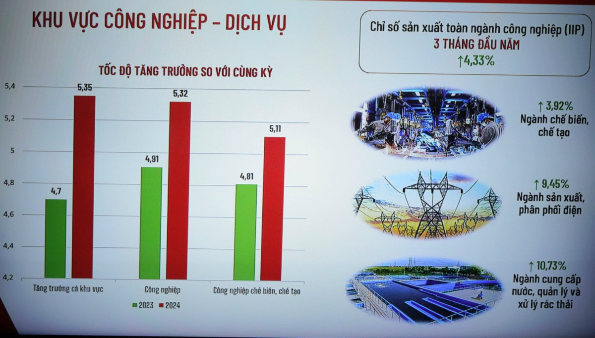 According to the report of the Provincial People's Committee, in the first quarter of 2024, the Gross regional domestic product (GRDP) is estimated to increase by 4.83%. This is a positive growth rate, the highest compared to the same period in the last 2 years, showing that the provincial economy is in the recovery phase since the Covid-19 pandemic broke out.