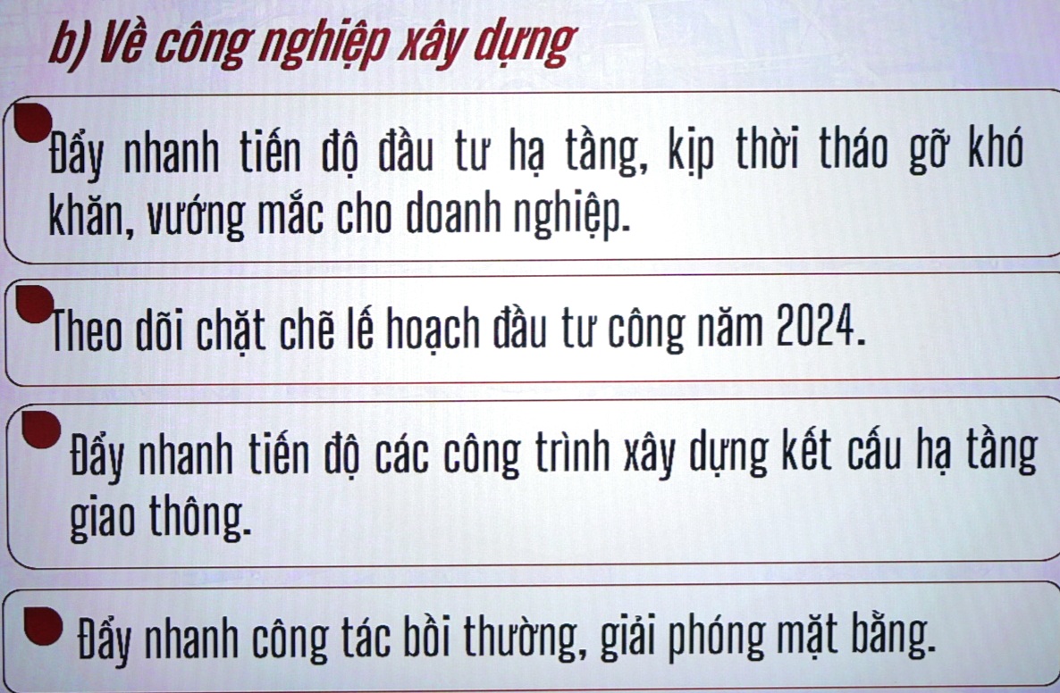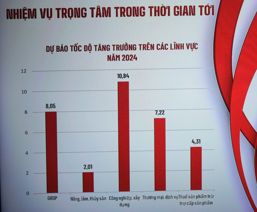 Accordingly, in order to achieve an economic growth rate of 8 to 8.5% in 2024, the Provincial People's Committee has proposed a number of tasks and solutions to implement. In particular, specific tasks are assigned to sectors, levels and localities for each specific group and field.