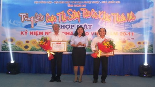 Closing the contest, the Organizing Committee awarded prizes to 8 songs of 7 best authors for composing children's songs, including 2 second prizes, 3 third prizes and 3 consolation prizes. Two second prizes belonged to 2 authors: Diep Vam Co (Ward 2, Tan An city) with the work “Dang sau vien phan trang” (Behind the white chalk); Nguyen Quoc Phong (from Long An Music Association) with a work “Quy hon bac vang” (More precious than gold).