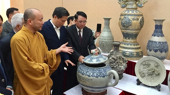 As many as 115 ceramic vase samples featuring exquisite motifs from the Ly and Tran dynasties are being showcased at the “Hai Phong bas-relief” exhibition, which opened at the Hanoi Art and Exhibition Centre on February 22.