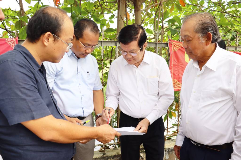 On October 14, former President - Truong Tan Sang; former Permanent Deputy Prime Minister - Truong Hoa Binh; Vice Chairman of Provincial People's Committee - Huynh Van Son; Director of Department of Education and Training - Nguyen Quang Thai came to survey to support building school in Can Giuoc district, Long An province.