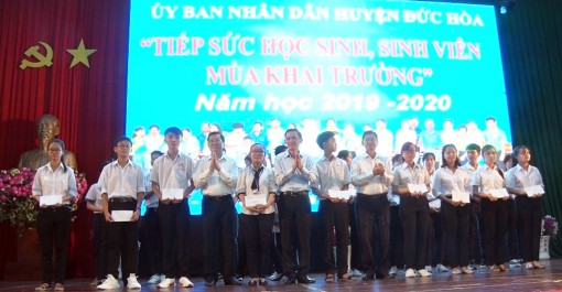 At the same time, Dr. Truong Minh Tuyet, Tran Anh Real Estate Company, Hanh Phuc Company, Anh Hong Company, Vietnam Study Promotion Association of Duc Hoa district awarded 175 scholarships (1 million VND each).