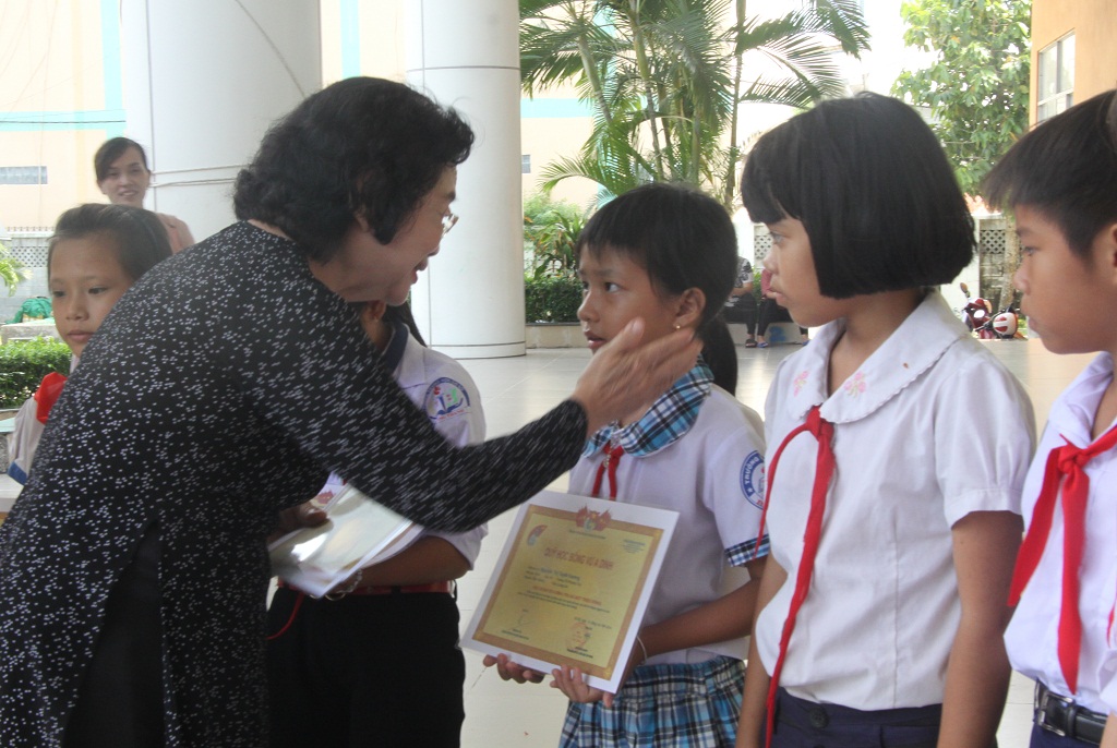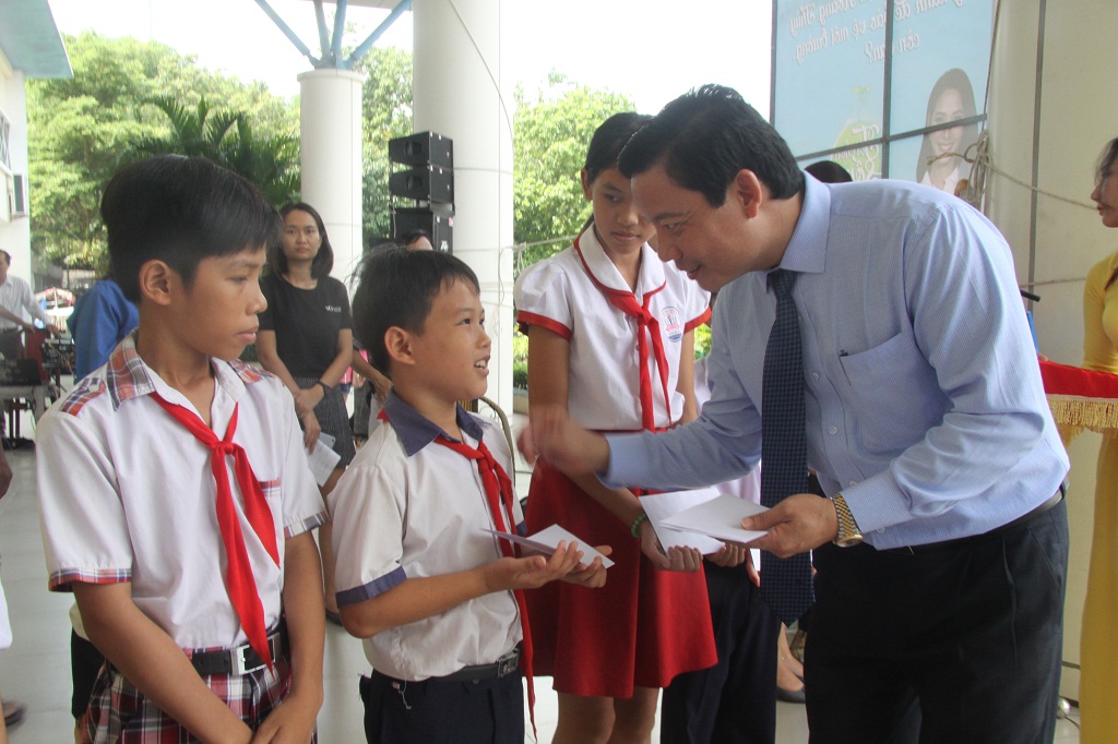 This is the activity of the program "Nang buoc toi truong - Thap sang tuong lai" (Helping students access to School - Brighten the Future) which is carried out by 3 organizations to support tuition fees and help disadvantaged students.