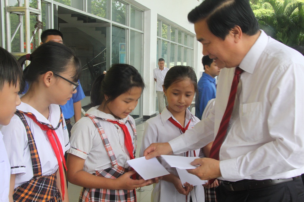 Vice-Chairman of the Provincial People's Committee - Pham Tan Hoa gives scholarships to students