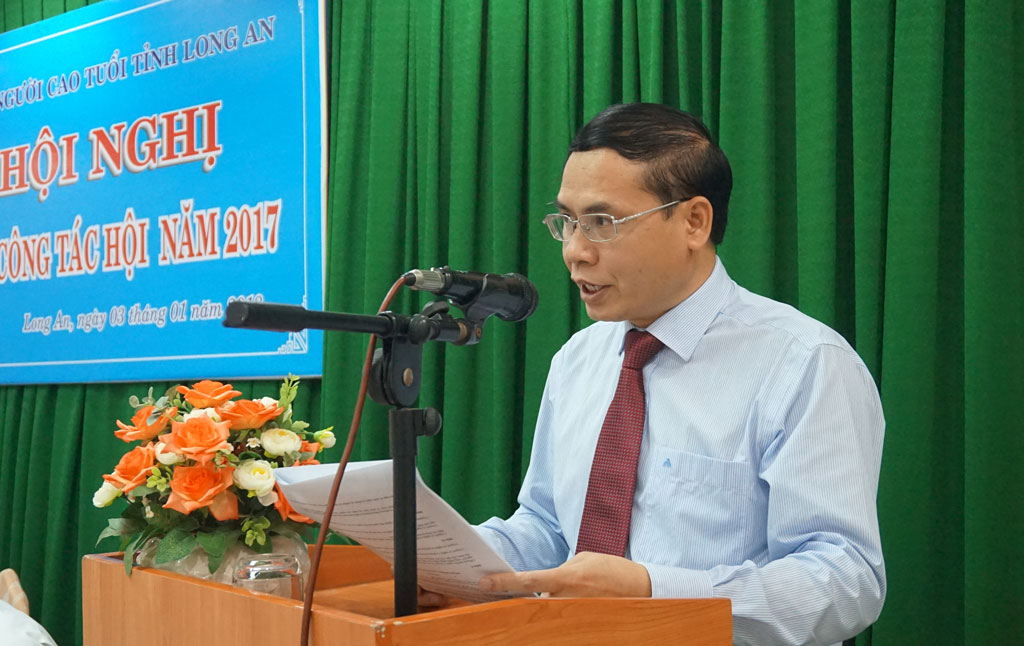 Chief of Representative Board of the Long An Elderly Association Nguyen Van Nhung reports results as well as activities in 2017
