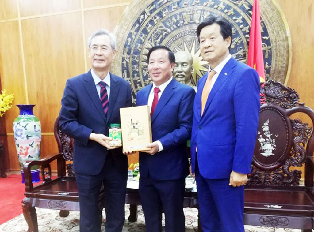 Vice Chairman of the provincial People's Committee - Nguyen Van Ut gives gift to representatives of Korea Tourism Promotion Organization