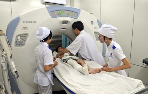 Doctors at Cho Ray Hospital in HCM City put a patient into a computerised tomography scanner. (Photo: VNA)