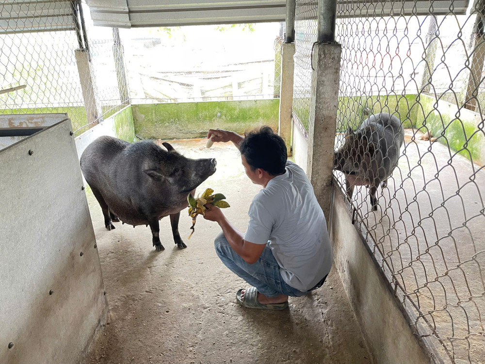 Mr. Do Quang Truong (Duc Hue commune, Tay Ninh province) said: "Initially, I raised 3 sows and 1 male with an investment cost from building a barn to breed of nearly 50 million VND. The family sold the first batch of boars for 55 million VND. Currently, we have expanded the barn to increase the herd. The boars are fed with sweet potato leaves and bananas grown around the house. The family is preparing to export the second batch, with profit of about 50 million VND after deducting all costs.”