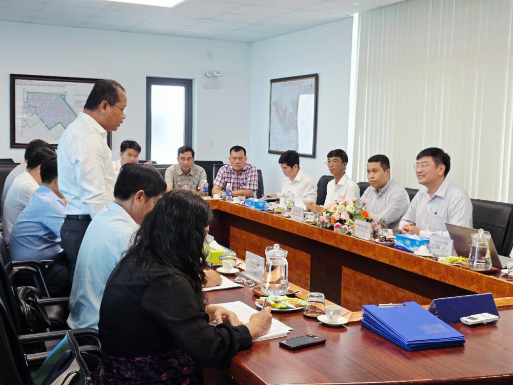 The working delegation of the Provincial Economic Zone Management Board led by Mr. Truong Thanh Liem works with the investors of Huu Thanh Industrial Park
