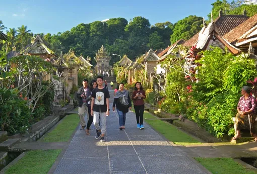 Tourists visit Penglipuran village in Kubu, Bangli, Bali. The village has been named the third cleanest village in the world by the Boombastik magazine in 2018. (Photo: Antara/Anis Efizudin)