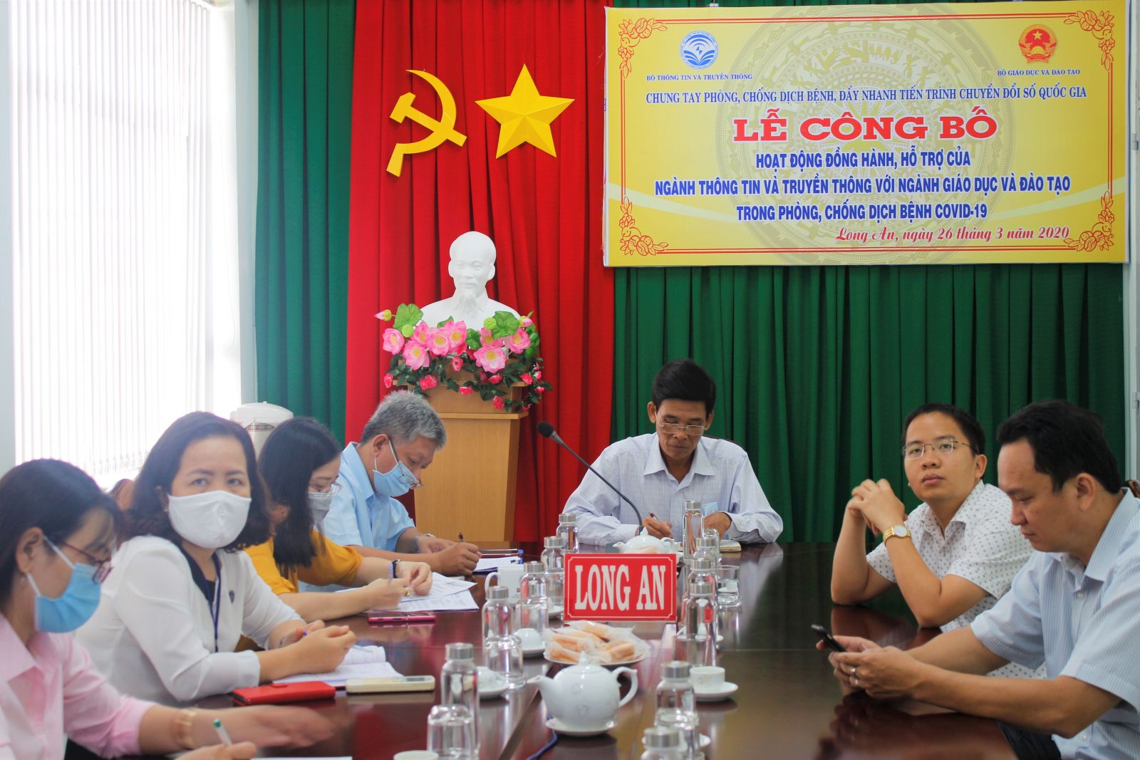 Minister of Information and Communications - Nguyen Manh Hung and Minister of Education and Training - Phung Xuan Nha co-chaired the conference. Deputy Director of Department of Information and Communications - Ho Van Dan chaired at Long An end-point bridge.
