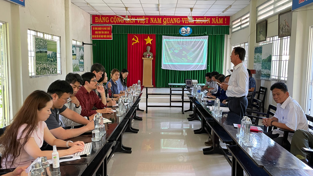 Deputy Director of Department of Agriculture and Rural Development of Long An province - Nguyen Chi Thien (standing) informs the Korean delegation about the difficulties of the Lang Sen Wetland Conservation Area