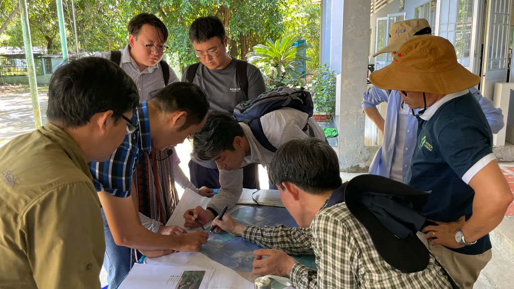 Based on these proposals, a group led by Director of the Global Forest Carbon Center (Korea Forestry Promotion Institute), Head of the expert delegation - Jun Jae Hong and a number of members reviewed on-site the analysis results with proposed locations for afforestation; conducted a field survey to install infrastructure to protect and manage flooded forests and listen to representatives of Lang Sen Wetland Conservation Area's detailed proposals on restoring wetland ecosystems and forestry infrastructure.