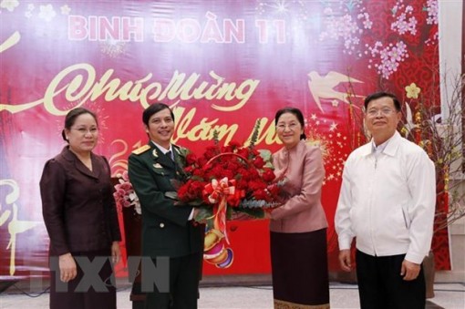 Chairwoman of the Lao National Assembly (NA) Pany Yathotou paid a visit on February 11 to officers and soldiers of Army Corps 11 of the Vietnam People’s Army who are working on the construction of the Lao NA House, on the occasion of the Lunar New Year (Tet) festival.