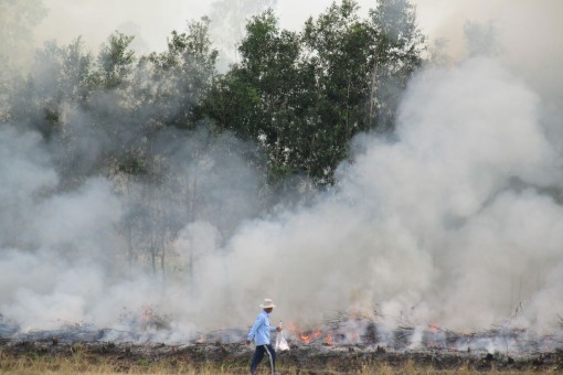 Burning rice fields causes the high risk of forest fire especially in the dry season