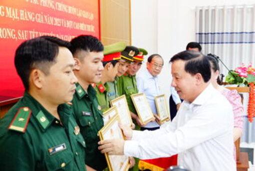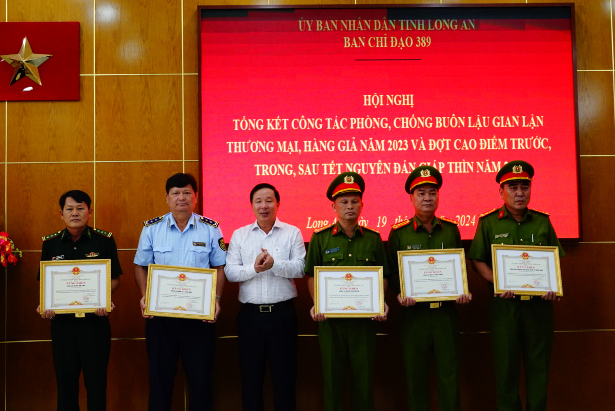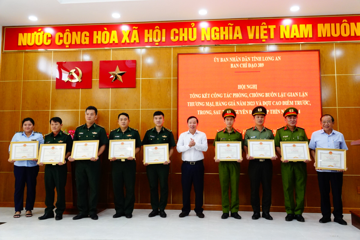 On this occasion, Long An Provincial People's Committee awarded certificates of merit to 5 collectives and 12 individuals with outstanding achievements in preventing and combating smuggling, trade fraud, and counterfeit goods./.
