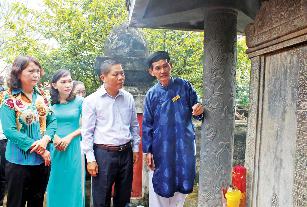 3. Back to Tan An City, our delegation continued to visit Nguyen Huynh Duc Temple and Tomb (in Khanh Hau Ward). This was the last location of the “Returning to our roots” journey at the historic sites in the spring days. The site includes an architectural complex of the tomb of the early Nguyen Dynasty with valuable antiques in the late XVIII and early XIX centuries. In addition, we also knew the life and career of a famous general Ba Giong land. General Nguyen Huynh Duc is worshiped as a predecessor by the people. In 1993, the tomb was recognized as a Historical-cultural relic.