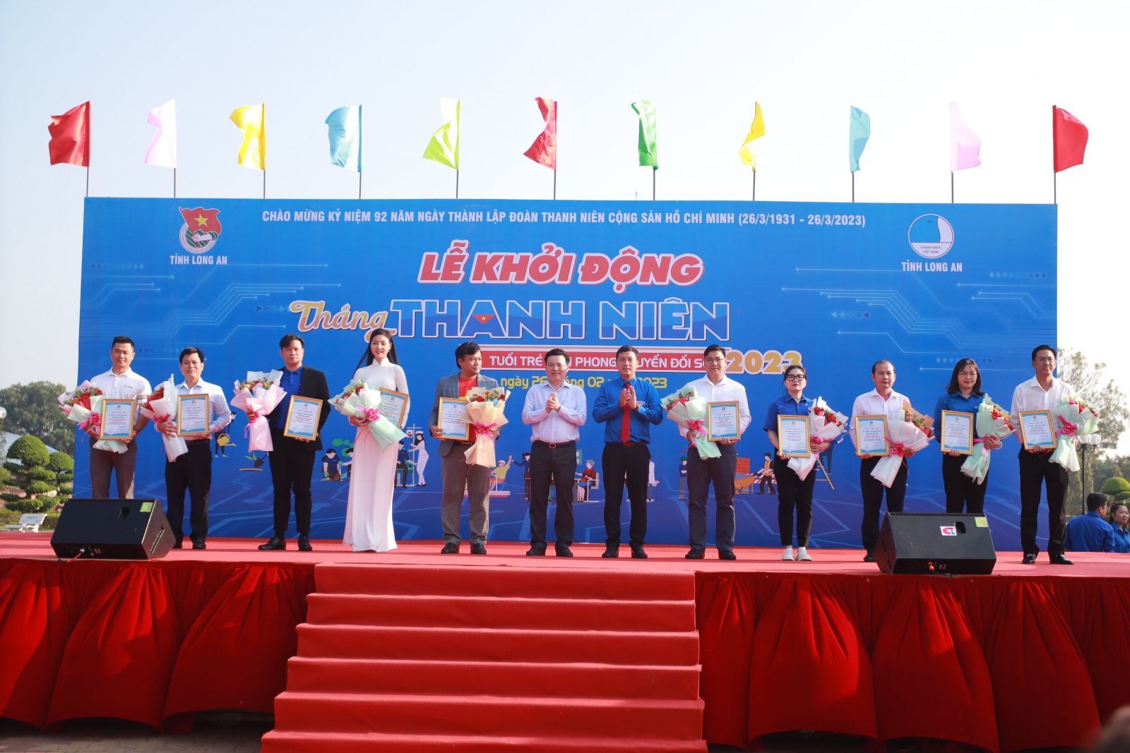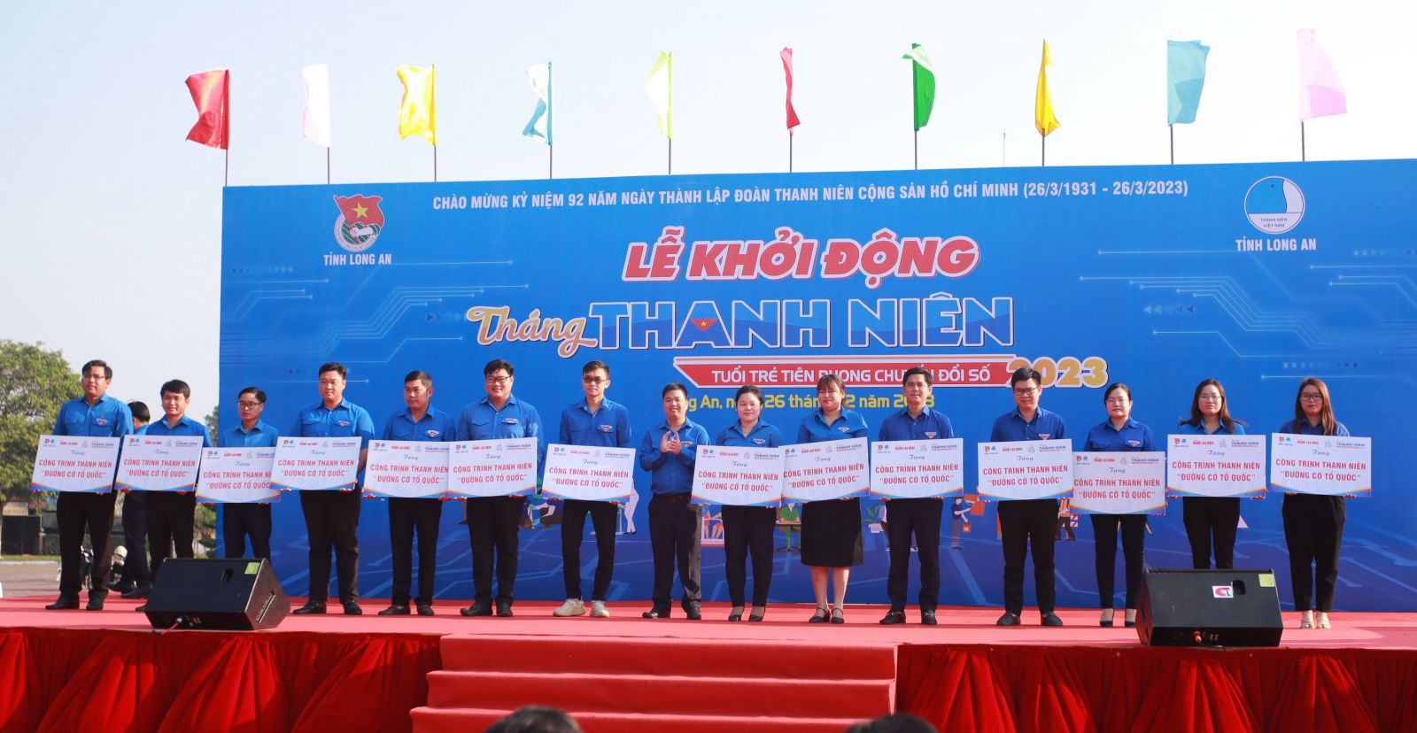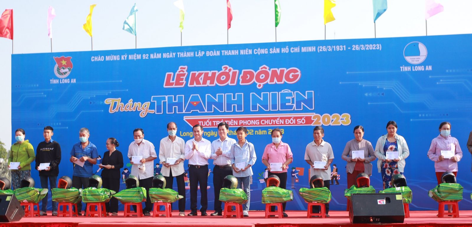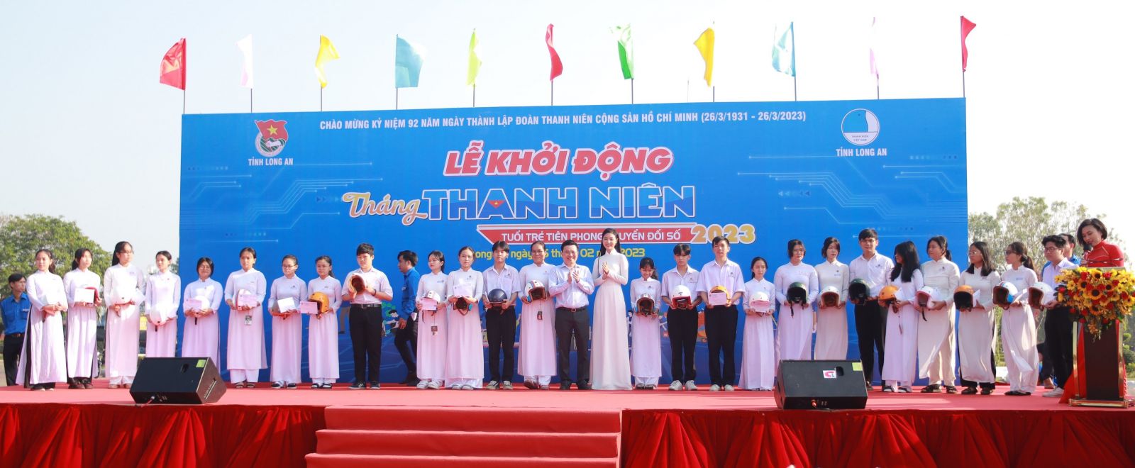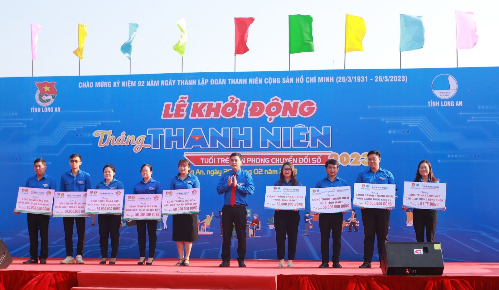 At the ceremony, the Provincial Youth Union received and presented 5,000 national flags to carry out the National Flag Road project worth 250 million VND; donated 5 "Red Scarf Houses" to support students in difficult circumstances in Duc Hue, Vinh Hung, Thu Thua, Can Giuoc, Thanh Hoa districts, each worths 60 million VND; supported 2 "Friendship houses" for union members and young people with difficult circumstances in Can Duoc district and Tan An city, each worths 50 million VND; supported 1 "Border light" project in Vinh Hung district worths 40 million VND; supported Tan Hung district to implement a rural traffic bridge project worth 1 billion VND.