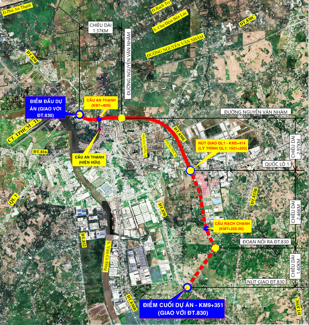 When Provincial Road 830E route is completed and put into use, it will create a traffic connection axis from local provincial roads with National Highway 1, Ring Road 3, Ring Road 4, Ho Chi Minh City, and Provincial Road 830C, Provincial Road 830.