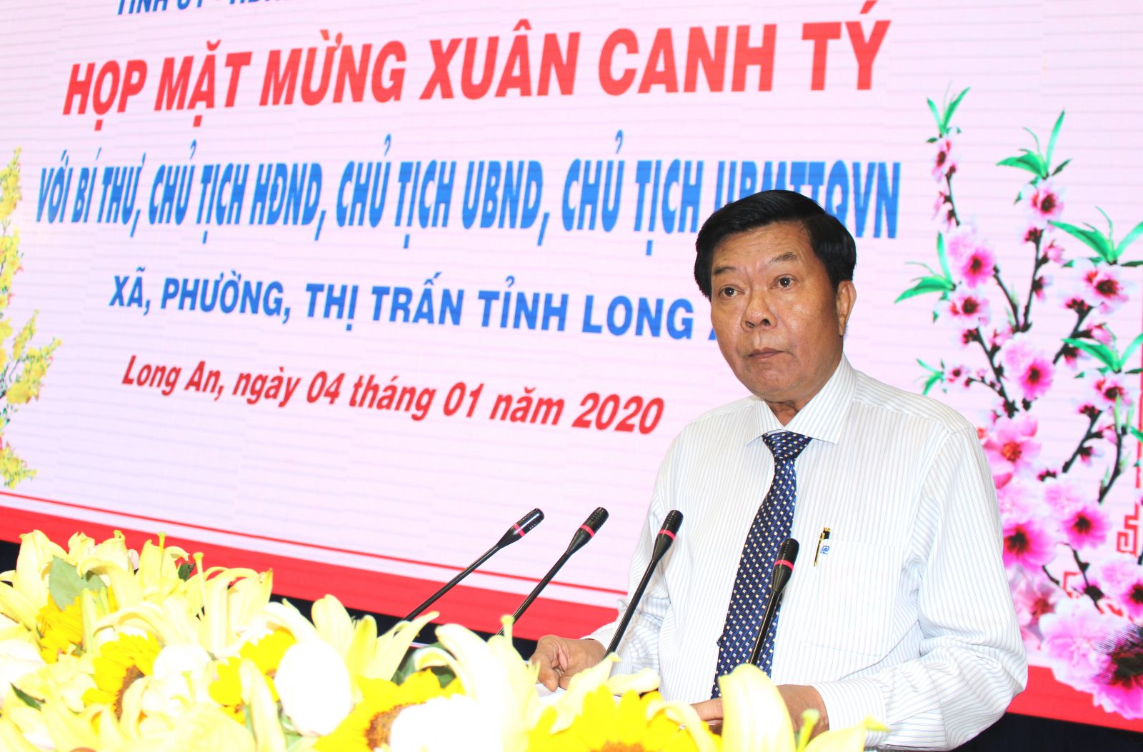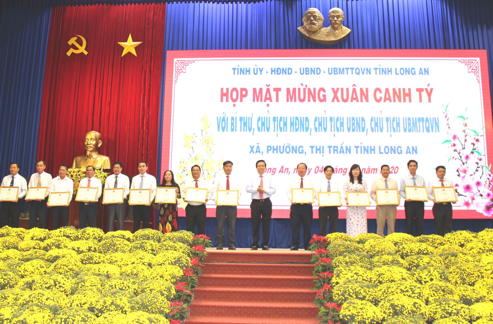 On January 4, Long An Provincial Party Committee, People's Council, People's Committee and Vietnam Fatherland Front Committee organized a meeting to celebrate the Lunar New Year 2020 with leaders of communes, wards and commune-level towns in the province. Secretary of the Provincial Party Committee, Chairman of the Provincial People's Council - Pham Van Ranh; Chairman of the Provincial People's Committee - Tran Van Can; Chairman of the Vietnam Fatherland Front Committee - Truong Van No attended the meeting.