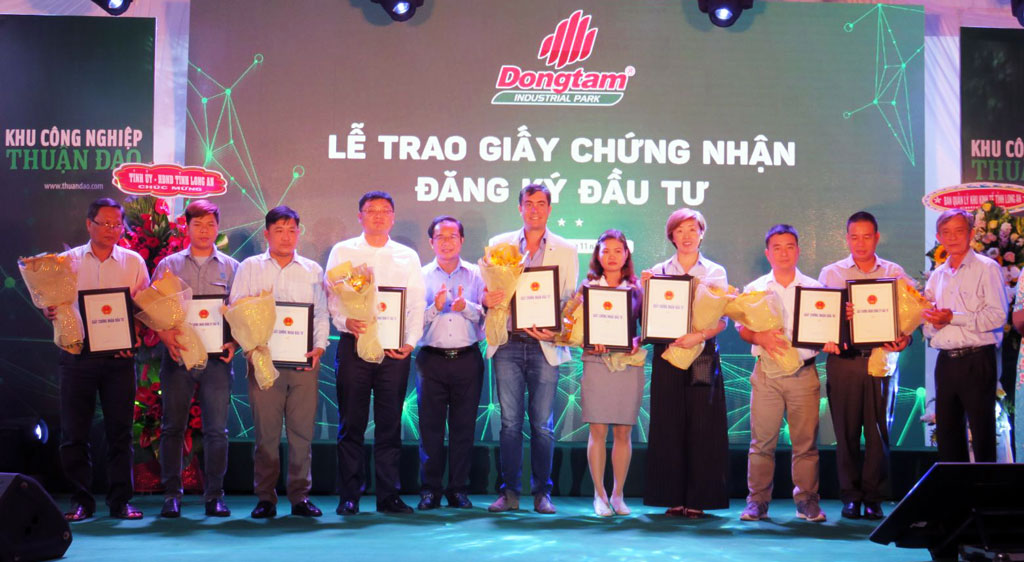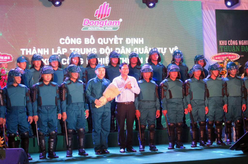 Dong Tam Industrial Park Join Stock Company organized a ceremony to grant investment certificates to secondary investors in Thuan Dao industrial park, introduce the park’s militia team and open to traffic a road connecting the park and Provincial Road 830 on November 16.