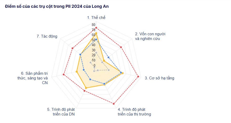 Long An has 5 indicators that are strengths such as the dynamism of local government; the ratio of enterprises with ISO certificates/1,000 enterprises; trademark registration applications/1,000 enterprises; industrial design registration applications/10,000 people; foreign direct investment/GRDP; etc.
