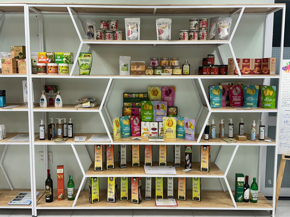 Long An's startup space displaying products of manufacturing enterprises, including many innovative startups