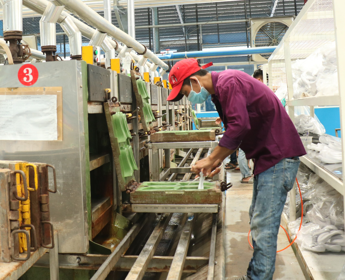 The province attracted 1,215 FDI projects (In the photo: workers of Nguyen Khoi Toan Loc Co. Ltd. Ben Luc district, 100% Taiwanese capital, performing stages in the production process)