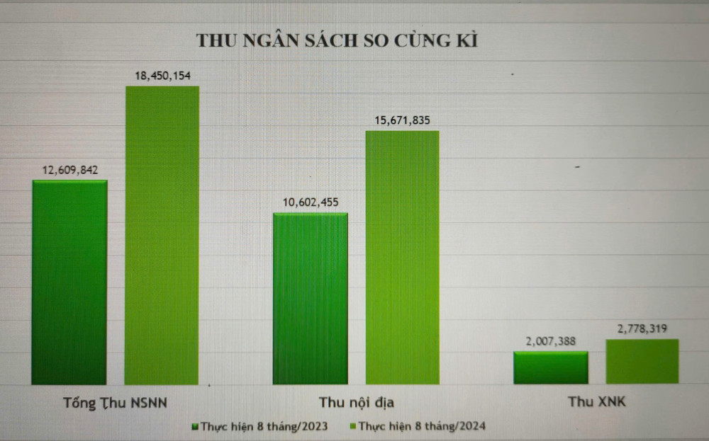 Total state budget revenue in the province reached 18,450 billion VND in the first 8 months of 2024
