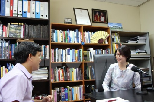Dr Hoo Chiew Ping, Senior Lecturer in Strategic Studies and International Relations under the National University of Malaysia (R) during the interview (Photo: VNA)