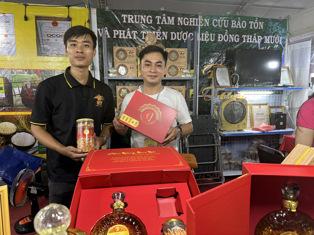 The fair is visited and shopped by many people. Cordyceps is one of the products that consumers visited the most. Realizing that the fair is a good opportunity to display and promote products, the Hoa Thinh Cordyceps mushroom business household (Go Do hamlet, Binh Hoa Tay commune, Moc Hoa district) registered to participate.