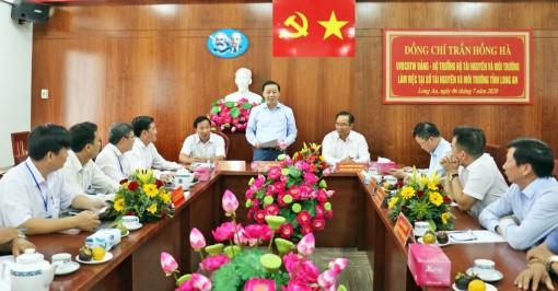 On July 6, Minister of Natural Reources and Environment (NRE) - Tran Hong Ha worked at the Long An Department of NRE. Permanent Deputy Secretary of the Provincial Party Committee - Nguyen Van Duoc, Vice Chairman of the Provincial People's Committee - Nguyen Van Ut attended the meeting.