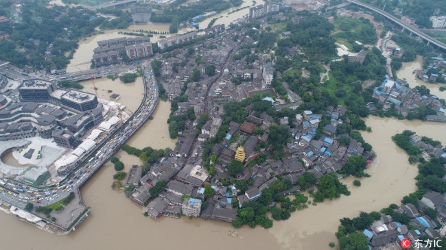 A flood peak passed the city proper of southwest China's Chongqing Municipality on 14 July, 2018. (Photo: IC)