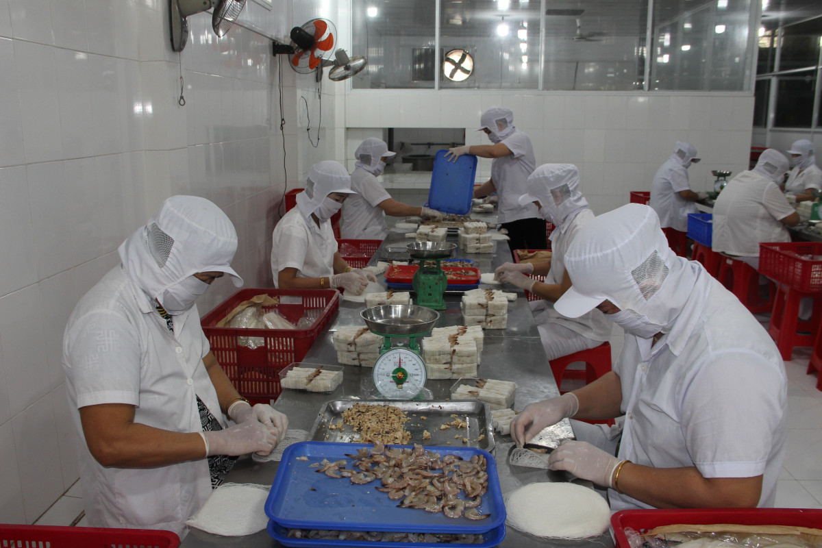 Workers of Kim Ngoc Food Spring Roll One Member Company Limited (Nhon Thanh Trung commune, Tan An city)