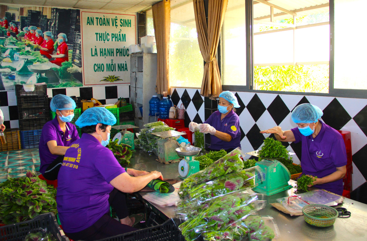 Workers of Phuoc Thinh Agricultural Production Trade and Service Cooperative (Long Hau commune, Can Giuoc district) process vegetables